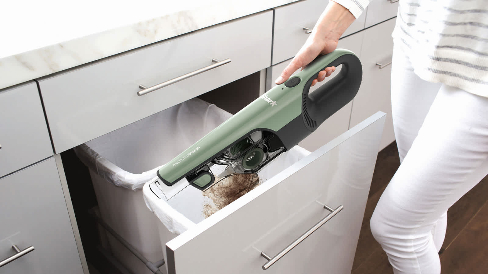 - CleanTouch Dirt Eject: Easily empty the dust cup without touching the mess.